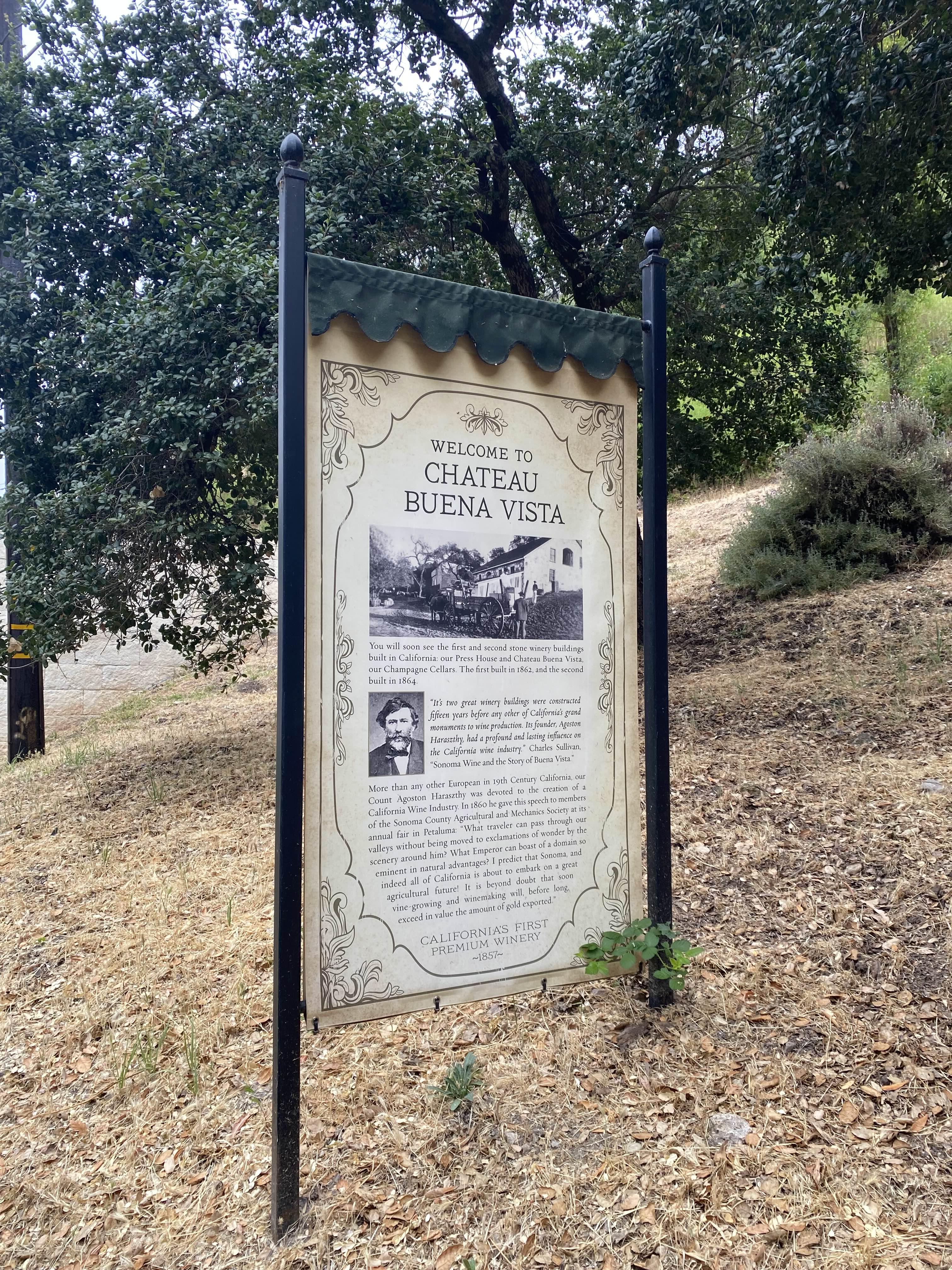 - 설립: 아그oston 하라즈티는 헝가리에서 이주하여 캘리포니아에 정착한 후, 유럽의 포도나무를 캘리포니아에 가져와 와인 생산을 시작했습니다. 그는 300여 종의 유럽 포도 품종을 캘리포니아로 들여왔으며, 이를 통해 부에나 비스타 와이너리를 설립했습니다.