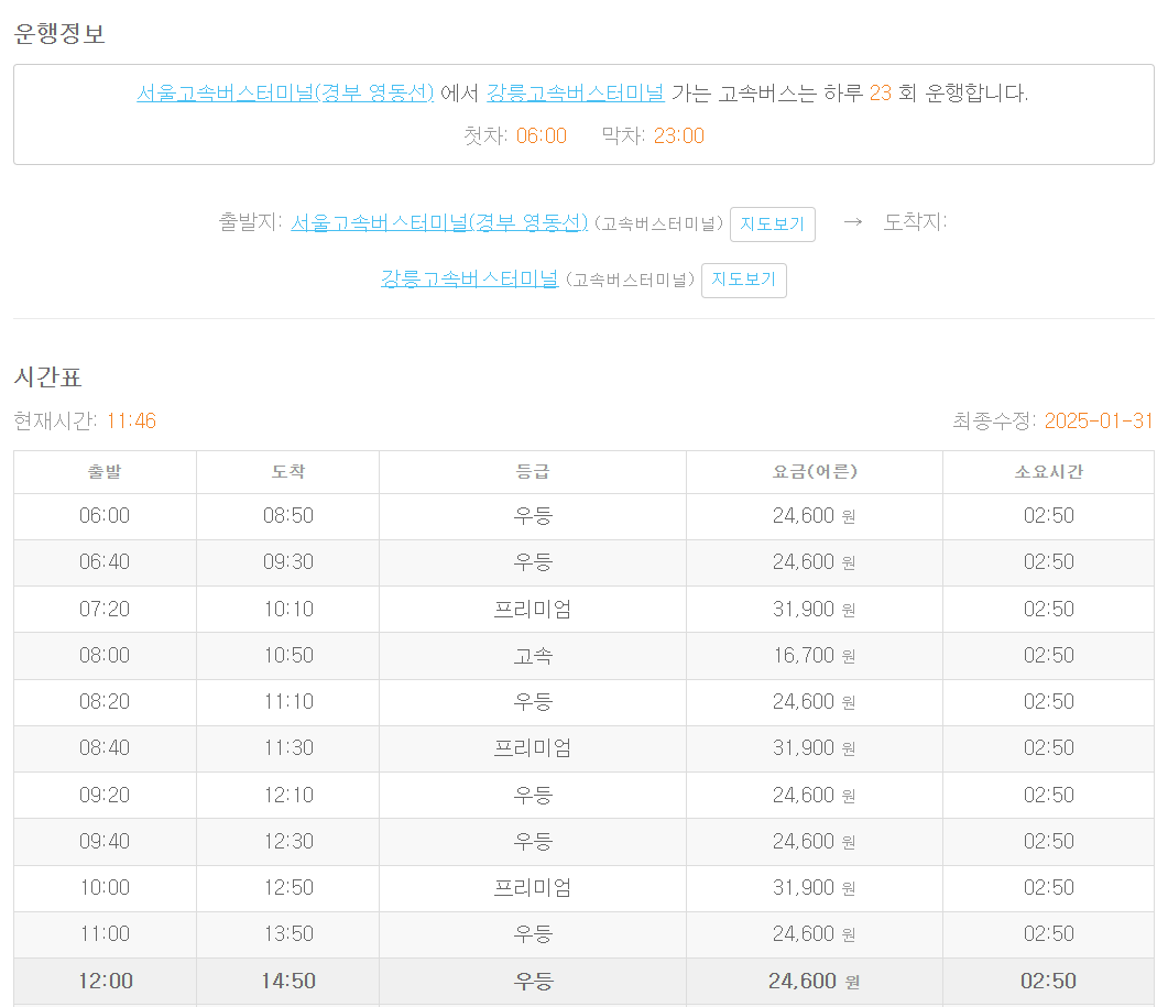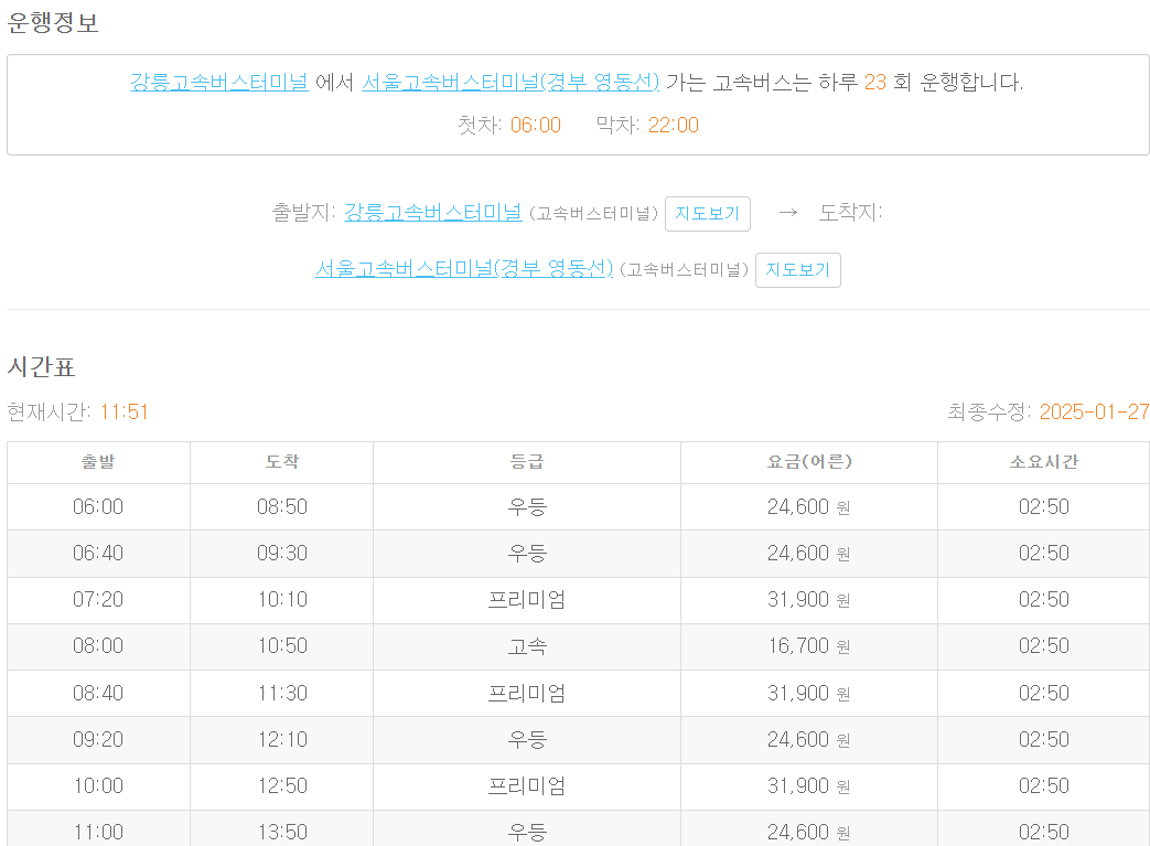 출발지: 서울고속버스터미널(경부 영동선)