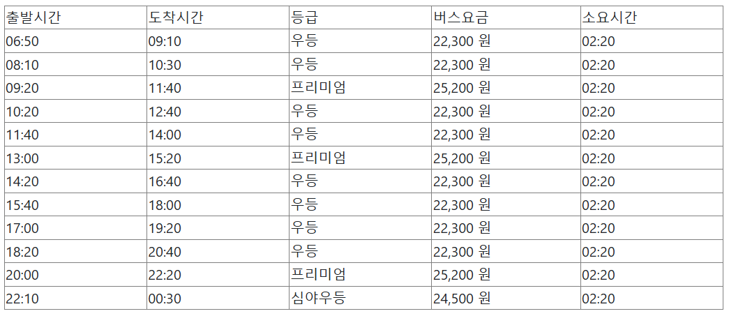 서울에서 강릉가는 버스 시간표