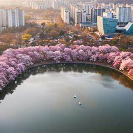 송파구에 위치한 석촌호수는 호수를 둘러싼 벚꽃길이 유명합니다. 호수 주변을 따라 약 2.5km 길이로 이어진 산책로에는 1,000여 그루의 벚나무가 심어져 있어, 산책하며 벚꽃을 감상하기에 최적의 장소입니다. 특히, 롯데월드타워와 어우러진 벚꽃 풍경은 사진 촬영지로도 인기가 높습니다. 매년 '석촌호수 벚꽃축제'가 열려 다양한 문화 행사와 공연이 진행됩니다.